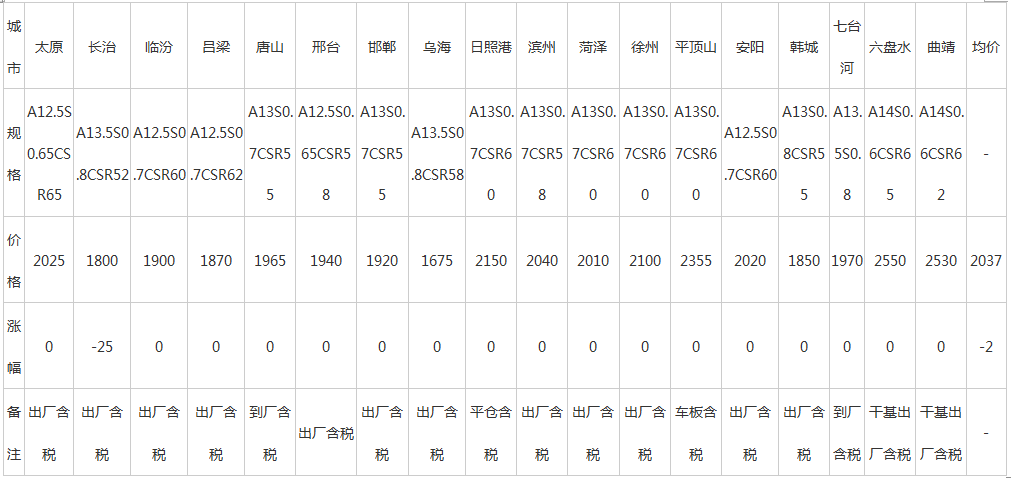 18日全国主要城市冶金焦价格汇总