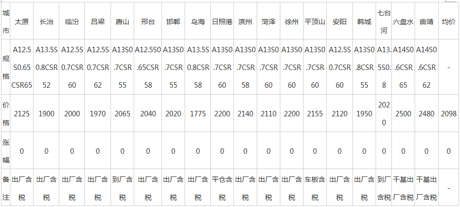 19日全国主要城市冶金焦价格汇总