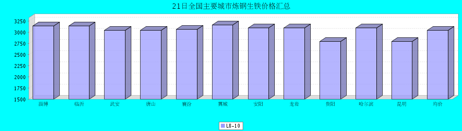 炼钢生铁淄博临沂武安唐山襄汾翼城安阳龙岩贵阳哈尔滨昆明均价L8-10315031503050305030703170310031002800310028003049涨跌000000000000产地山东山东河北河北山西山西河南福建贵州黑龙江云南-