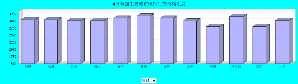 | 炼钢生铁 | 淄博 | 临沂 | 武安 | 唐山 | 襄汾 | 翼城 | 安阳 | 龙岩 | 贵阳 | 哈尔滨 | 昆明 | 均价 |