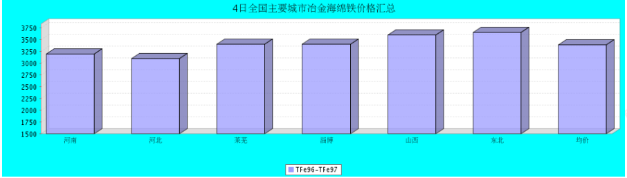 | 冶金海绵铁 | 河南 | 河北 | 莱芜 | 淄博 | 山西 | 东北 | 均价 |