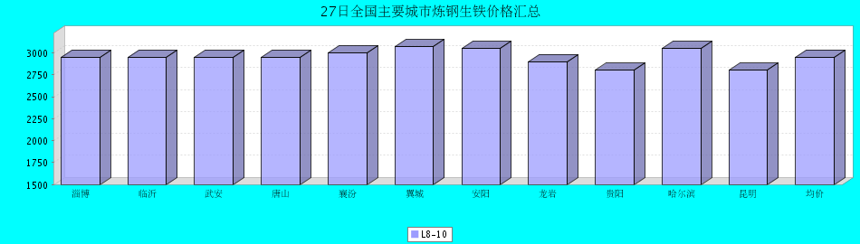 炼钢生铁淄博临沂武安唐山襄汾翼城安阳龙岩贵阳哈尔滨昆明均价L8-10295029502950295030003070305029002800305028002952涨跌000000000000产地山东山东河北河北山西山西河南福建贵州黑龙江云南-