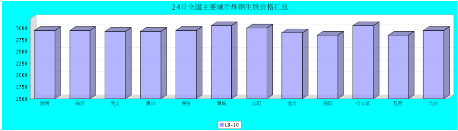 炼钢生铁淄博临沂武安唐山襄汾翼城安阳龙岩贵阳哈尔滨昆明均价L8-10295029502930293029503050300029002850305028502946涨跌000000000000产地山东山东河北河北山西山西河南福建贵州黑龙江云南-