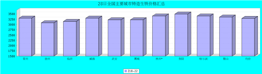 | 铸造生铁 | 常州 | 徐州 | 临沂 | 威海 | 武安 | 翼城 | 林州* | 贵阳 | 哈尔滨 | 鞍山 | 均价 |