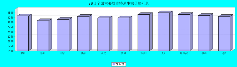 铸造生铁常州徐州临沂威海武安翼城林州*贵阳哈尔滨鞍山均价Z18-2233303080315033003220322034003500340033503295涨跌+30000000000+3产地山西江苏山东山东河北山西河南贵州黑龙江辽宁-