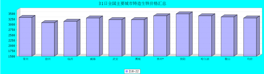 铸造生铁常州徐州临沂威海武安翼城林州*贵阳哈尔滨鞍山均价Z18-2233303080315033003220322034003500340033503295涨跌00000000000产地山西江苏山东山东河北山西河南贵州黑龙江辽宁-