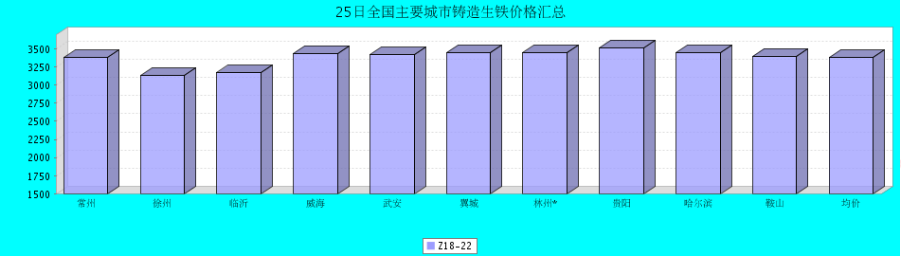 | 铸造生铁 | 常州 | 徐州 | 临沂 | 威海 | 武安 | 翼城 | 林州* | 贵阳 | 哈尔滨 | 鞍山 | 均价 |