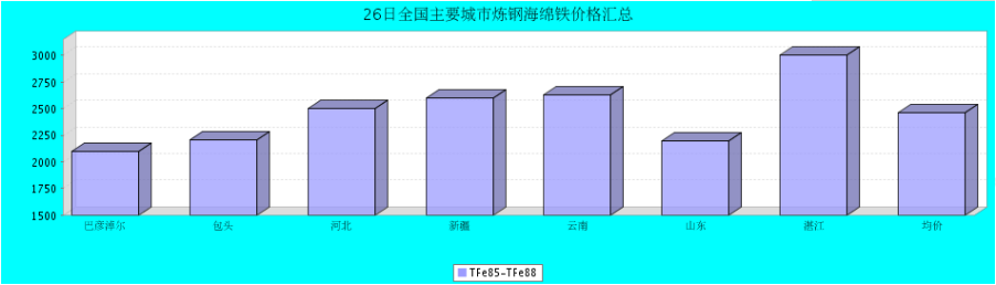 炼钢海绵铁巴彦淖尔包头河北新疆云南山东湛江均价TFe85-TFe8821002210250026002630220030002463涨跌0000000-产地内蒙古包头邢台鄯善昆明济南湛江-