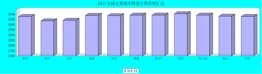 | 铸造生铁 | 常州 | 徐州 | 临沂 | 威海 | 武安 | 翼城 | 林州* | 贵阳 | 哈尔滨 | 鞍山 | 均价 |