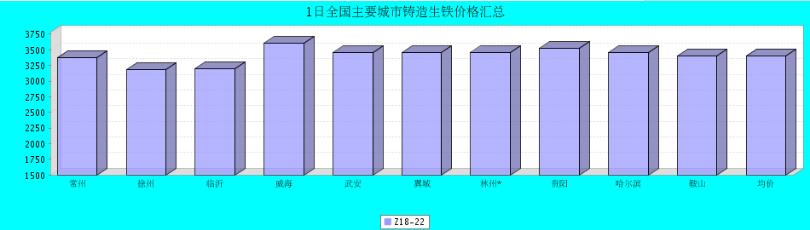 | 铸造生铁 | 常州 | 徐州 | 临沂 | 威海 | 武安 | 翼城 | 林州* | 贵阳 | 哈尔滨 | 鞍山 | 均价 |