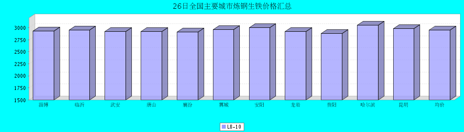 炼钢生铁淄博临沂武安唐山襄汾翼城安阳龙岩贵阳哈尔滨昆明均价L8-10293029502920292029102960300029202880305029802947涨跌000000-300000-3产地山东山东河北河北山西山西河南福建贵州黑龙江云…