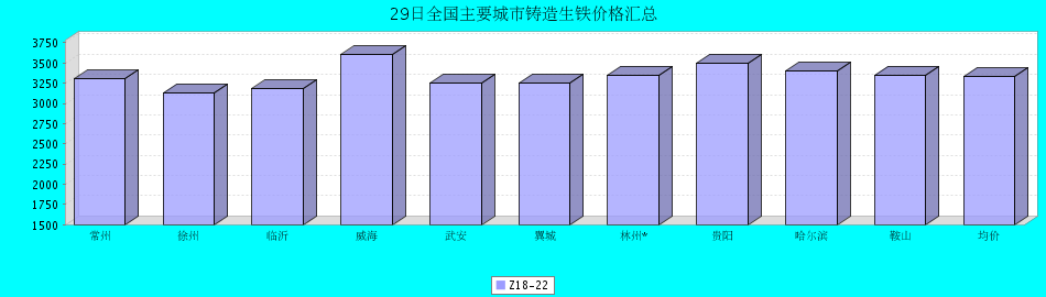 | 铸造生铁 | 常州 | 徐州 | 临沂 | 威海 | 武安 | 翼城 | 林州* | 贵阳 | 哈尔滨 | 鞍山 | 均价 |