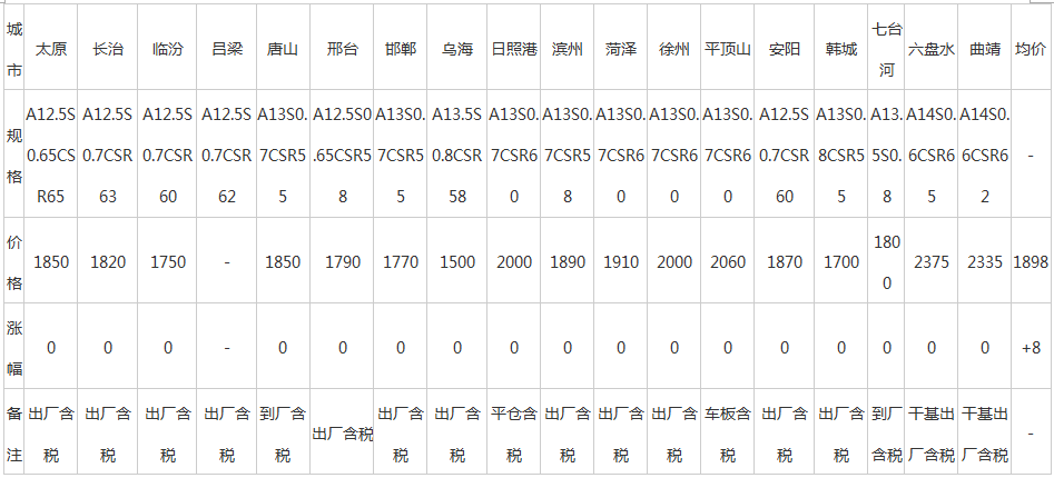 8日全国主要城市铁合金价格汇总