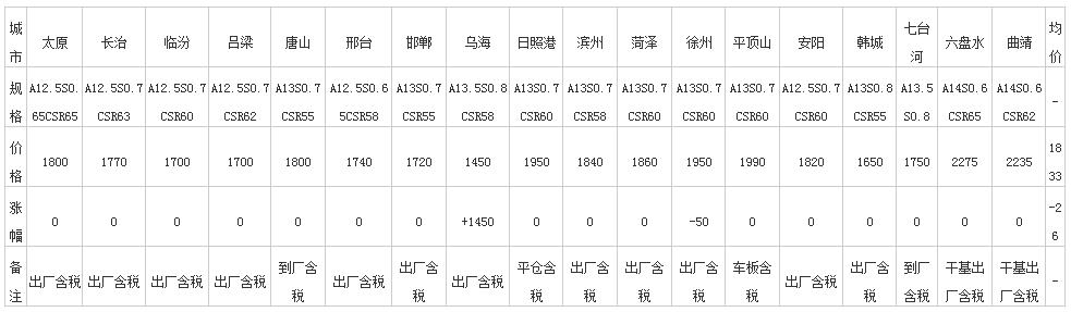 29日全国主要城市部分钢厂铁精粉采购价格汇总