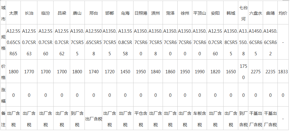 31日全国主要城市冶金焦价格汇总