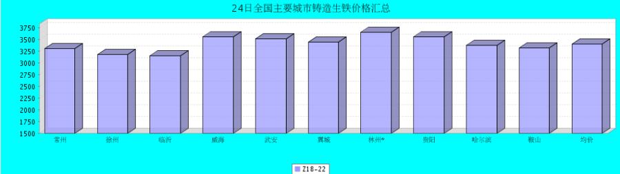 | 铸造生铁 | 常州 | 徐州 | 临沂 | 威海 | 武安 | 翼城 | 林州* | 贵阳 | 哈尔滨 | 鞍山 | 均价 |