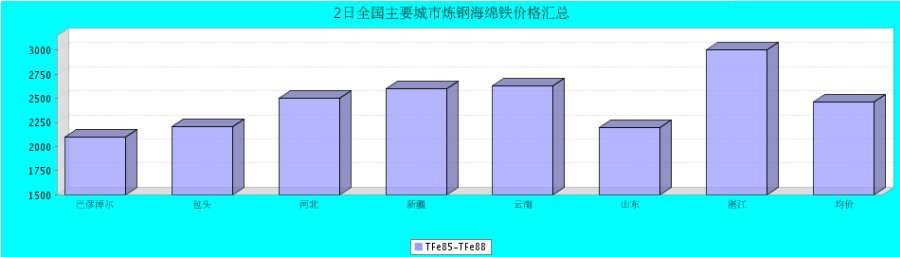 炼钢海绵铁巴彦淖尔包头河北新疆云南山东湛江均价TFe85-TFe8821002210250026002630220030002463涨跌0000000-产地内蒙古包头邢台鄯善昆明济南湛江-
