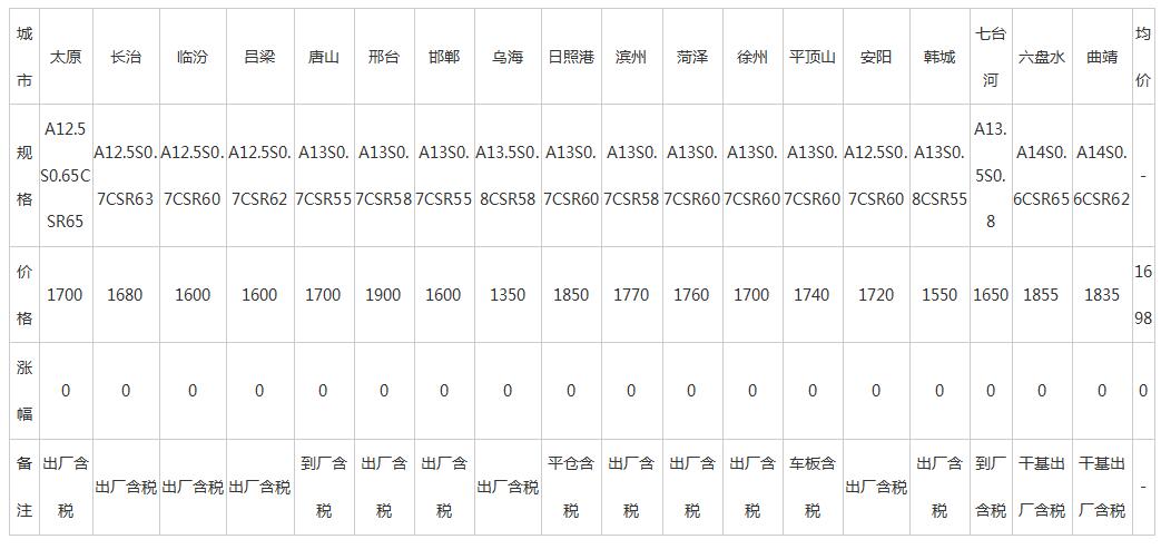 9日全国主要城市冶金焦价格汇总