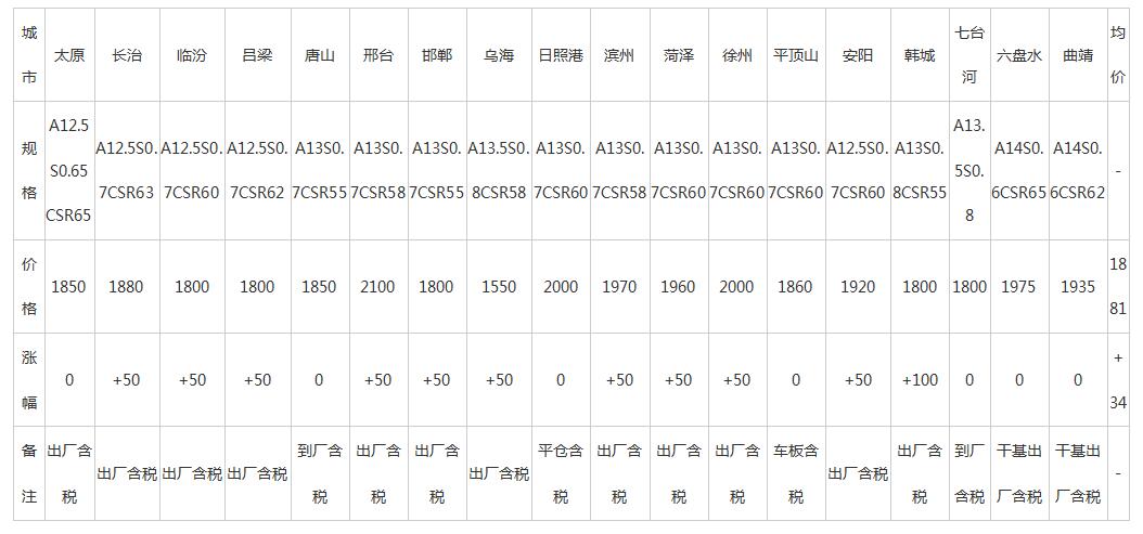 15日全国主要城市冶金焦价格汇总