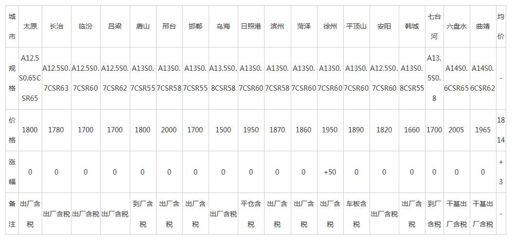 18日全国主要城市部分钢厂铁精粉采购价格汇总