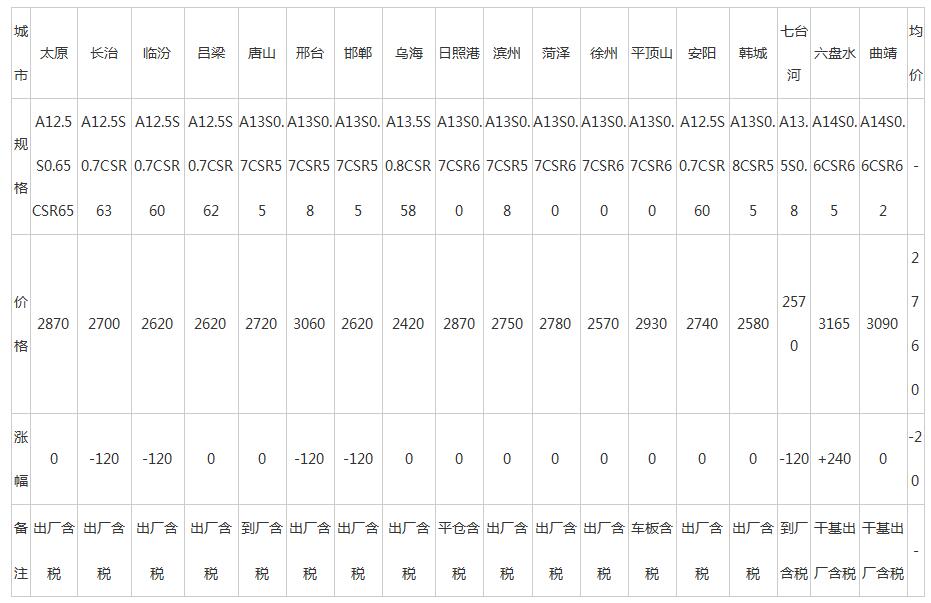 2日全国主要城市部分钢厂铁精粉采购价格汇总