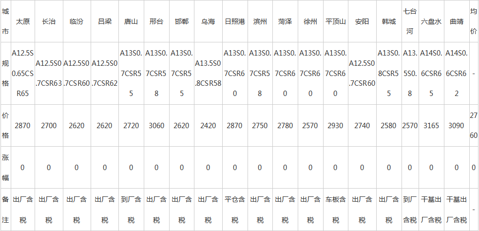 7日全国主要城市冶金焦价格汇总