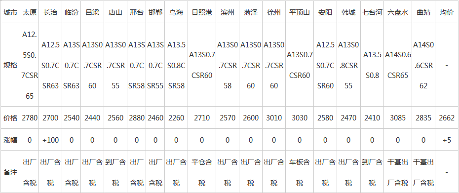10日全国主要城市冶金焦价格汇总