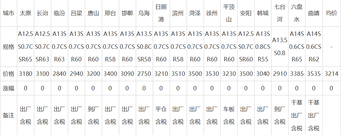 2022年3月4日全国主要城市还原铁粉价格汇总