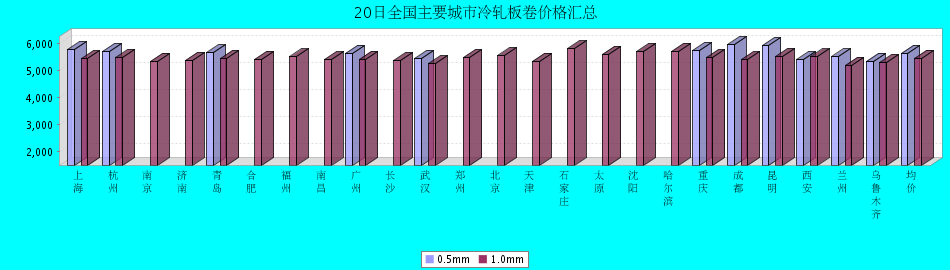 20日全国24个主要城市冷轧板卷价格明显上涨。