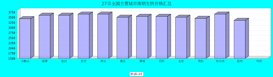 | 炼钢生铁 | 马鞍山 | 淄博 | 临沂 | 武安 | 唐山 | 襄汾 | 翼城 | 安阳 | 龙岩 | 贵阳 | 哈尔滨 | 昆明 | 均价 |