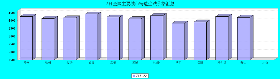| 铸造生铁 | 常州 | 徐州 | 临沂 | 威海 | 武安 | 翼城 | 林州* | 昆明 | 贵阳 | 哈尔滨 | 鞍山 | 均价 |
