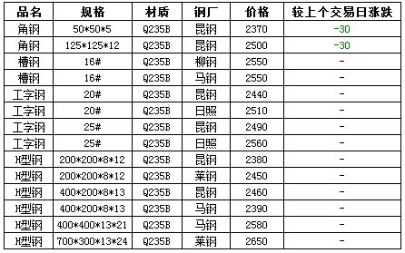 21日昆明市场大中型材价格弱势下行,具体如下: