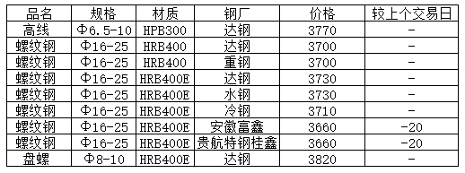 1、今日期螺、钢坯小幅反弹,商家报价多数持稳,部分心态较差商家继续跌价出货;