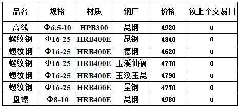 1.据贸易商反馈,今日昆钢出厂价格未动,市场主流价格持稳,民营钢厂出厂价格未动,主流代理商报价持稳。