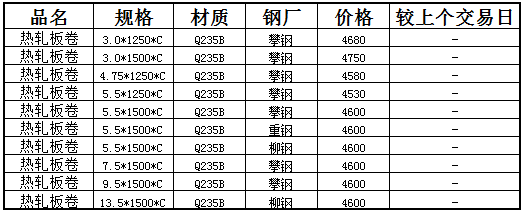 2、据贸易商反馈,本周热轧板卷价格已经累计涨了110元/吨,继续推涨压力较大;