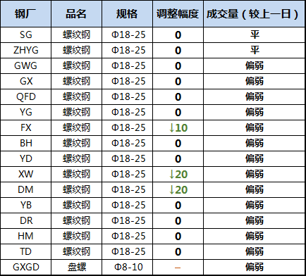 6日根据本网统计的华南区域16家主导钢厂调价,共3家调整出厂价格,其中FX下调10元/吨,DM、XW下调20元/吨。6日期螺1905全天震荡下行,现3375元/吨跌0.97%,小幅增仓;唐山迁安地区普方坯部分资源出厂降20元/吨,报3310元/吨,现金含税。今日市场整体成交偏弱,由于市场心态低迷,虽今日库存利好但交投气氛仍然低迷,下游采取议价观望态度,贸易商暗降走货。受大风降雪天气影响,本周鲅鱼圈港船只进出受限,预计本周后期逐渐恢复正常,南下到货进度阶段性受到影响。目前华南区域价格相对高位,受需求下降与后期到货风险影响,预计近期华南建材现货价格或仍偏空运行。