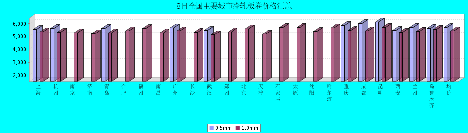 | 冷轧 | 上海 | 杭州 | 南京 | 济南 | 青岛 | 合肥 | 福州 | 南昌 | 广州 | 长沙 | 武汉 | 郑州 | 北京 | 天津 | 石家庄 | 太原 | 沈阳 | 哈尔滨 | 重庆 | 成都 | 昆明 | 西安 | 兰州 | 乌鲁木齐 | 均价 |