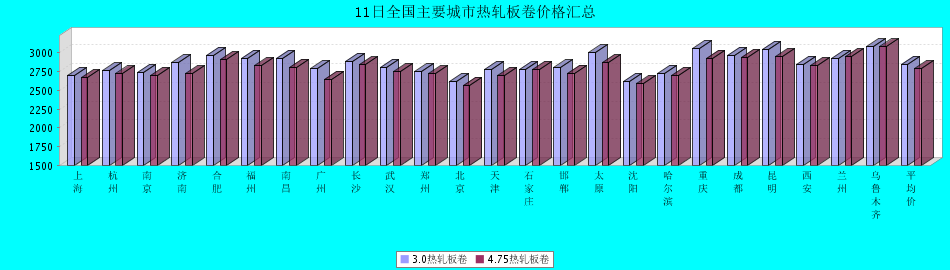 热轧上海杭州南京济南合肥福州南昌广州长沙武汉郑州北京天津石家庄邯郸太原沈阳哈尔滨重庆成都昆明西安兰州乌鲁木齐平均价3.0热轧板卷2700276027402870297029302930279028902810275026202780…