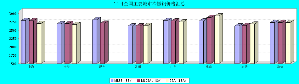 | 冷镦钢 | 上海 | 宁波 | 温州 | 常州 | 广州 | 重庆 | 海盐 | 均价 |