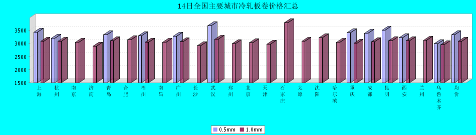 | 冷轧 | 上海 | 杭州 | 南京 | 济南 | 青岛 | 合肥 | 福州 | 南昌 | 广州 | 长沙 | 武汉 | 郑州 | 北京 | 天津 | 石家庄 | 太原 | 沈阳 | 哈尔滨 | 重庆 | 成都 | 昆明 | 西安 | 兰州 | 乌鲁木齐 | 均价 |