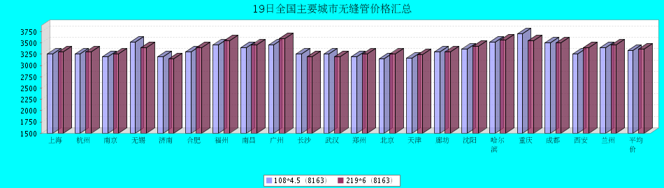 | 无缝管 | 上海 | 杭州 | 南京 | 无锡 | 济南 | 合肥 | 福州 | 南昌 | 广州 | 长沙 | 武汉 | 郑州 | 北京 | 天津 | 廊坊 | 沈阳 | 哈尔滨 | 重庆 | 成都 | 西安 | 兰州 | 平均价 |