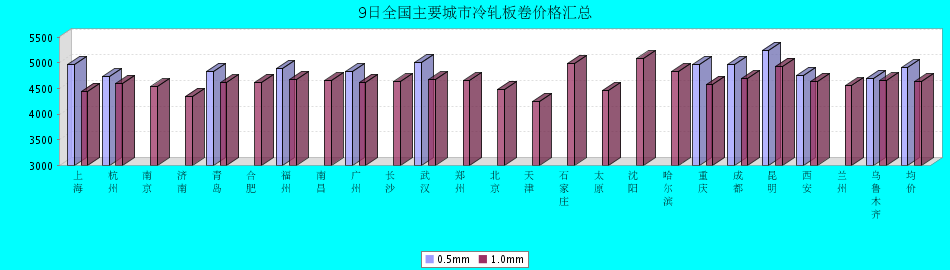 9日全国主要城市冷轧板卷价格汇总