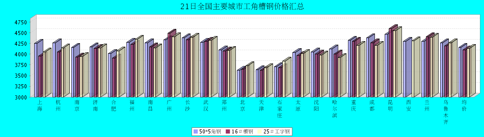 21日全国主要城市工角槽钢价格汇总