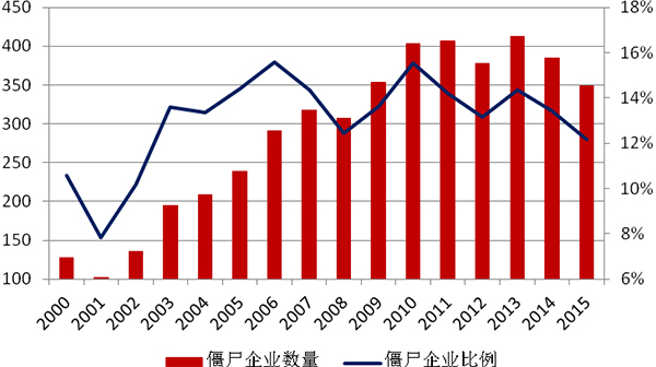 7月27日,中国人民大学国家发展与战略研究院反腐败与新政治经济学研究中心发布了一份名为《中国僵尸企业研究报告——现状、原因和对策》的报告。这份报告从年份、行业、地区、企业所有制、企业规模和企业年龄分析了中国僵尸企业的现状。