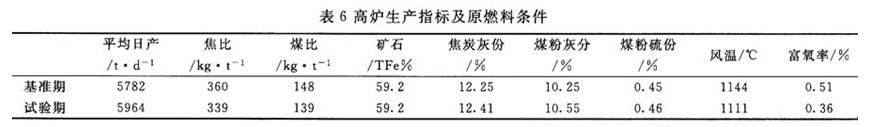在配加5%的2#煤后,制粉、喷吹正常,高炉顺行。本次试验拓展了喷吹煤资源,即2#煤可以作为首钢高炉喷吹煤配喷煤资源。