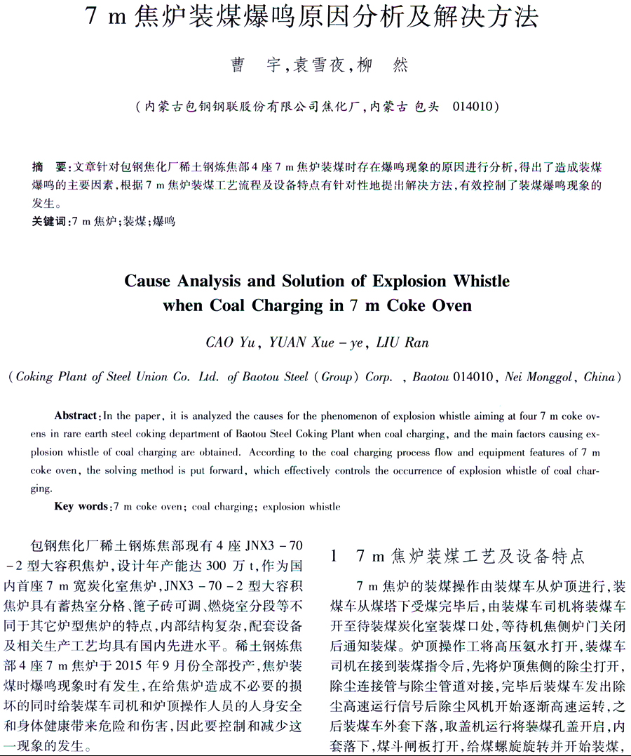 7m焦炉装煤爆鸣原因分析及解决方法