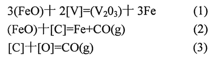 正如炼钢采用复吹工艺一样,转炉提钒的较佳工艺是复吹:顶吹氧气、底吹惰性气体。底部供气可有效地调节金属和钒渣的氧化度,加快下列反应: