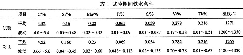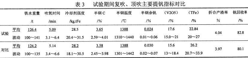 本次试验所采用的主要工艺参数及试验结果(5701炉)与同期顶吹提钒结果(5435炉)进行了比较,列于表3。
