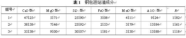 根据表 1 所示进站渣成分, 设定L F 炉白渣 成分为, % : C aO 57, S iO 2 21, M gO 510, F eO 110, A l2O 3 10, C aF 2 5。