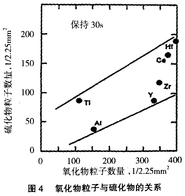 为了弥补上述脱氧元素的不足,将弱脱氧元素与强脱氧元素组合是有效手段。如加入Ti对钢液脱氧后,再加入Zr进行脱氧,从而可以减小Ti的氧化物分布对钢液冷却速度的依赖陛。